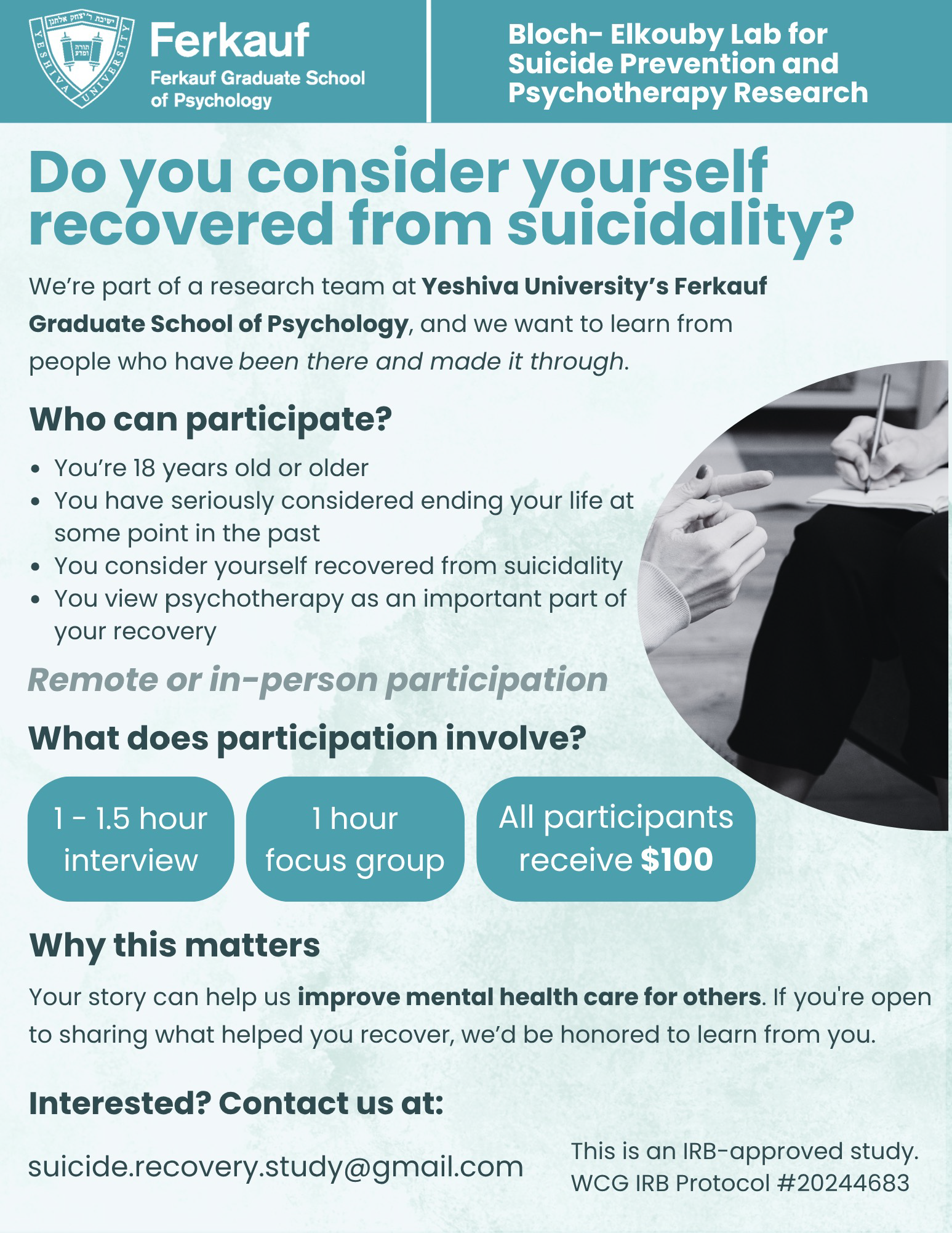 If you are interested in participating, please contact suicide.recovery.study@gmail.com.
